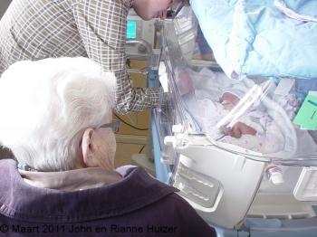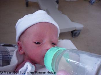 Met Lars gaat het goed, ligt nog wel in het ziekenhuis, maar is al wel uit de couveuse en mag gewoon in een wiegje, zondagochtend 20 maart is hij weer gewogen en weegt 1895 gram, dus hij is over zijn geboortegewicht (1870 gram) heen, hij is nu echt aan het groeien, daar zijn wij erg blij mee.