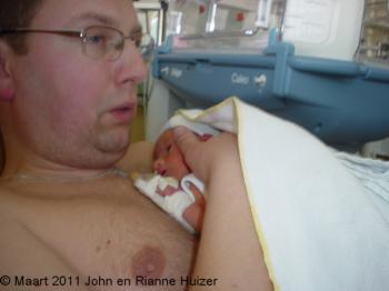Zaterdag 12 maart moeten we om 9.00 uur in de verloskamer zijn, daar worden we heel lief opgevangen. Rianne is aan het infuus gegaan om de weëen op te wekken.
