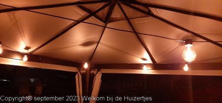 We hebben gelijk daarna een nieuwe tuinpaviljoen aangeschaft en gemonteerd en nieuwe terraslampjes opgehangen en de rest van het straatwerk schoongespoten. We hebben weer een mooi tuintje..