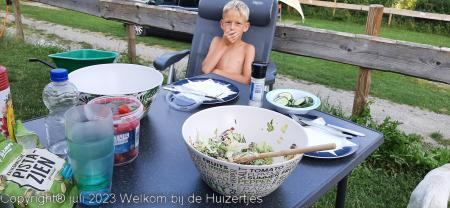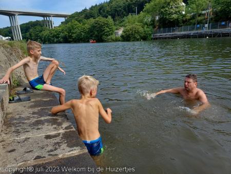 Toen we stonden zijn Jens, Lars en ik gelijk gaan zwemmen in het meertje, en hebben we lekker zitten eten, maar is het zo weer laat helaas.