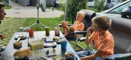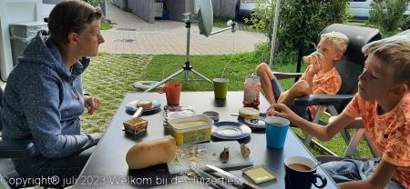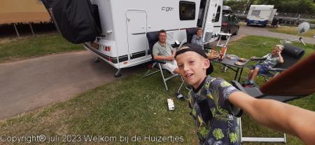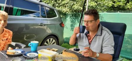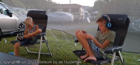 Maar we hebben ons vandaag prima vermaakt, en tussen de regen door heeft Jens wat gefietst en Lars op z’n tablet/telefoon aardig vermaakt en wij hebben zitten lezen e.d.