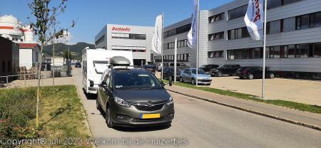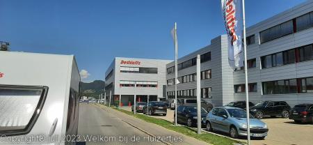 Vanmorgen zijn we vanaf Wertheim via de A3, A7 en de A96 naar Isny gereden, waar de fabriek staat waar onze caravan gebouwd is en hebben we voor de fabriek gestaan.