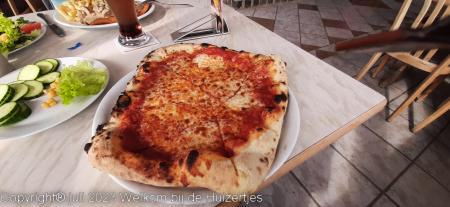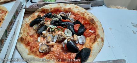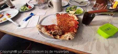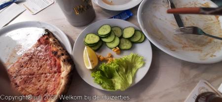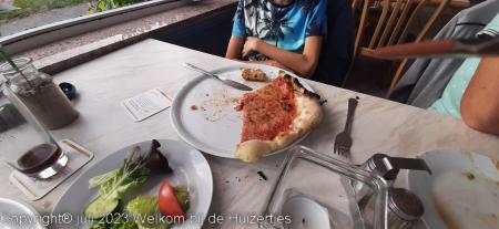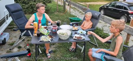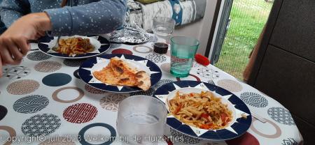 Vanavond zijn Jens, Lars en ik met de losse auto in Bruneck een heerlijke pizza wezen halen terwijl Rianne de caravan geveegd en gedweild heeft nadat er een fles cola heeft liggen lekken onderweg, en we hebben die pizza’s in de caravan lekker op zitten eten.