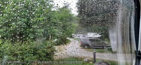 Gisteravond een flinke bui gehad, met ontzettend veel onweer erbij en flinke regen. Maar de luifel hadden we gelukkig al ingedraaid.