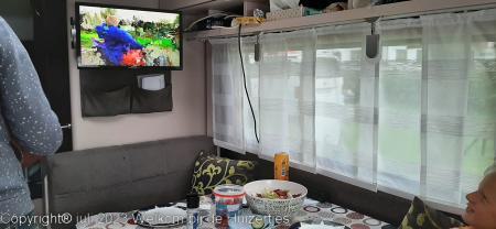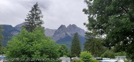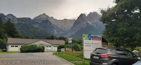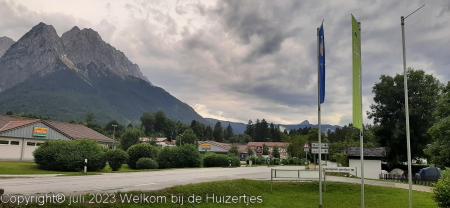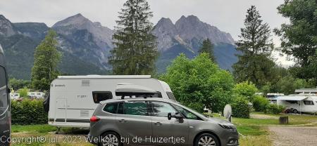 Vanmiddag toen we op camping Erlebnis Zugspitse (achteraf voor ons een veel te dure camping!) aankwamen, en we de poten naar beneden hadden gedraaid en de stroom hadden aangesloten begon het helaas te regenen. Toen het wat droger was de schotel neergezet en we hebben lekker in de caravan zitten eten.