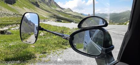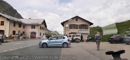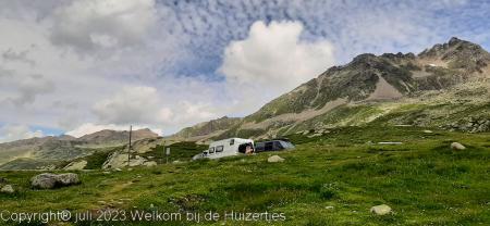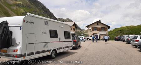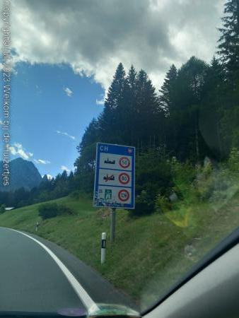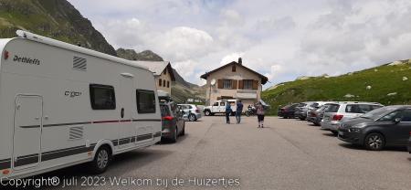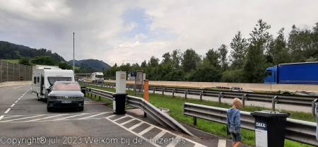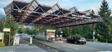 Op de top op 2383m, hebben we zitten lunchen, en daarna zijn we verder gereden richting Davos na een flinke afdaling en daarna via Vaduz (FL) naar Feldkirchen (A), daar hadden we een camping gemikt, maar deze was vol. De volgende was plek, is een camping met alleen maar vaste staanplaatsen en nét in Zwitserland waar 1 toerplekje is waar wij konden staan, en precies op de grens Zwitserland-Oostenrijk bij het douanekantoor.