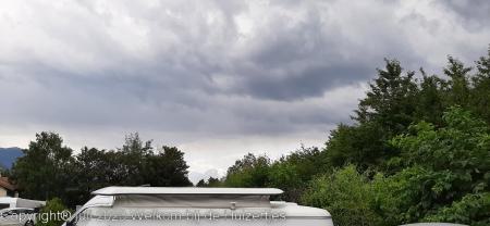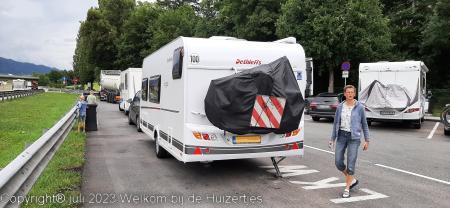 Rond half 12 reden we pas weg. We zijn langs de Wörthersee gereden richting Klagenfurt en zo de autobahn weer op terug richting Salzburg. Bij Spittal a/d Drau zijn we de B100 opgereden richting Lienz zo Italië in, net over de grens hadden we een camping gevonden, maar deze was vol, naar de volgende camping maar naar op zoek. We kwamen in een flinke hoosbui en later in een lange file op de SS49 richting Bruneck, ik vermoed door een ongeval door de zware bui op SS49.