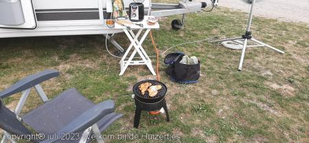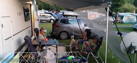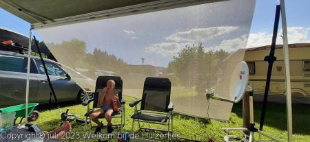 Erg veel wind gehad onderweg, maar ook op de camping met de luifel en zijwand opzetten flinke wind, maar mijn ervaring is dan dat de tent dan juist goed komt te staan