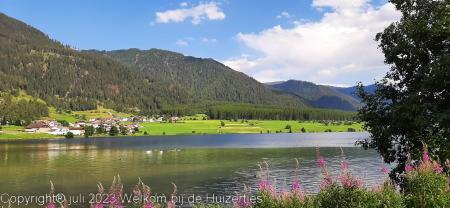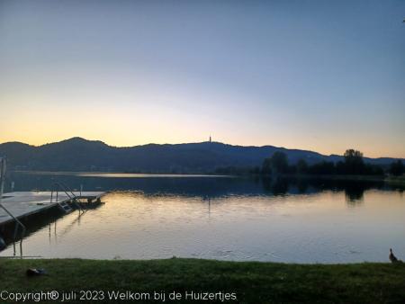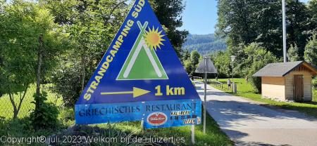 Klimmen is moeilijk, maar de afdaling was van de categorie loodzwaar, in z’n 1e versnelling afdalen en de remmen van de caravan in de gaten houden, want die hadden ’t zwaar. Maar het is goed gekomen en we zijn via Winkler, de N106 (wat een hobbelpad!) Mühldorf en Spittal an der Drau de A10 richting Villach gereden. En we zijn naar Keutschach gereden, helaas, op camping Brückler Nord, waar we op gemikt hadden was geen plaats, maar op Strandcamping Süd, iets verderop was wel plaats en daar staan we nu voor een paar dagen.