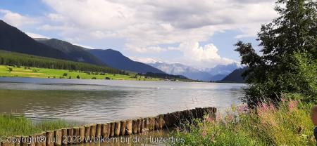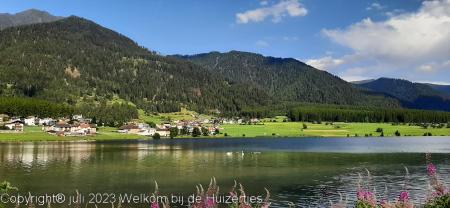 We zijn vanaf Bruneck, naar Brixen de Autostrada del Brennero opgereden met een gigantische onweersbui, waar het met bakken uit de lucht kwam met gigantische aquaplaning zijn we via Brennero/Bozen gereden, gelukkig klaarde het weer flink op en daarna zijn we de SS38 opgereden richting Merano/Meran, daar hebben we zitten lunchen bij een fruitwinkel waar we heerlijke verse aardbeien hebben zitten eten, zijn we via Schlanders gereden en staan we nu in Sankt Valentin auf der Haide aan een prachtig bergmeer op 1500 meter hoogte op een mooie camping aan de voet van de Passo Resia/Reschenpaß.