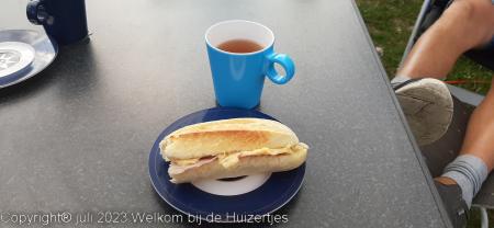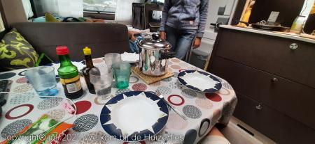 Toen het vanmorgen opklaarde zijn we eruit gegaan en hebben we lekker zitten ontbijten en de watertank gevuld en het toilet weer geleegd.