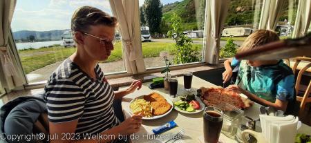 Maar we hebben leuke dagen gehad, lekker gegeten, de BBQ aangehad, we hebben toch nog ff kunnen zwemmen, we zijn langs de Rijn gereden maar nu langs de oostelijke oever via de B42 vanaf Koblenz naar Oestrich-Winkel waar we naar Ingelheim am Rhein overgevaren zijn en via de A61 weer naar de camping zijn gereden.