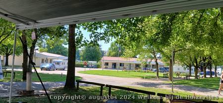 We moesten ff een half uurtje wachten bij de poort want de receptie ging pas om 15u open, maar gelukkig was er ruim voldoende plek, we konden een plekje uitzoeken in de regen, af en toe was het even droog en hebben we de luifel uitgedraaid want koud was het niet, zodat we toch buiten konden zitten onder de luifel. Later koelde het flink af en was het niet erg lekker meer en hebben we de schotel gezet zodat we binnen lekker wat tv konden kijken.