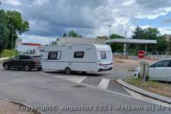 Na een ontbijtje in de caravan en alles reisvaardig gemaakt te hebben, zijn we rond 10.15u weer gaan rijden. Vanaf Merzig tot aan Straatsburg zijn we binnendoor gereden, we hebben bij Sarre-Union zitten lunchen op een parkeerplaats van een gesloten supermarkt.
