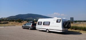 Vandaag hebben we het echte rauwe autovia boenderwerk gehad, de vullingen zijn er aardig bij ons uit gerammeld uit onze gebitten, want wat een slechte wegen hebben we gehad, het materiaal krijgt het aardig voor z’n kiezen. Maar de auto en caravan hebben zich voorbeeldig gedragen en hebben goed hun best gedaan. De auto doet het tot nu toe gelukkig perfect en is beresterk.