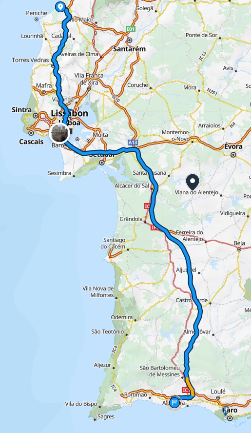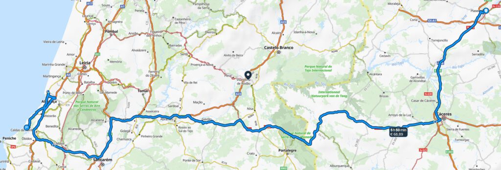 Morgen rijden we via Cacéres via de N521 Portugal in en het plan is om nabij Nazaré aan de Atlantische kust een camping te mikken.