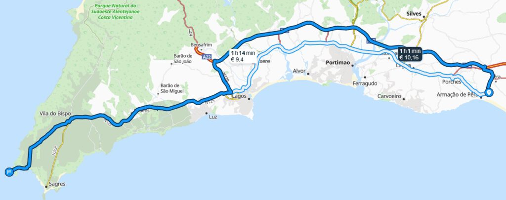 Gisterenmiddag kwam ik tot de ontdekking dat er een spijker in m’n band zat. We waren van plan om vandaag weer verder te gaan trekken, maar toch maar besloten om eerst een bandenboer op te zoeken om m’n band te laten repareren, vanmorgen optijd eruit (7u Portugese tijd, PT) gegaan en rond half tien (PT) was ik bij een Euromaster in Albufeira, waar de band helemaal van de velg afgehaald is en gerepareerd.