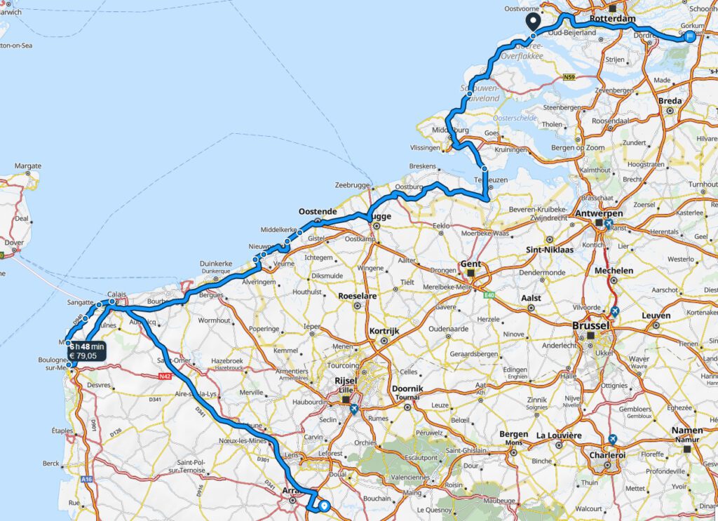 Vandaag hebben we geprobeerd om Antwerpen helemaal te mijden, en zijn we eerst via Calais, Sangatte, waar we hebben zitten lunchen, daarna via Dunkerque, stukje langs de Belgische kust via de Westerscheldetunnel, Oosterscheldekering en de Brouwersdam, waar we vanavond een burger hebben zitten eten die we bij zo’n kraam hebben gekocht. En rond 20.30u zijn we weer gaan rijden, rond 21.30u draaiden we de ventweg op en waren we thuis. We hebben vandaag een prachtige dag gehad waarbij we weer veel gezien hebben. We hebben vandaag 542 kilometer gereden.