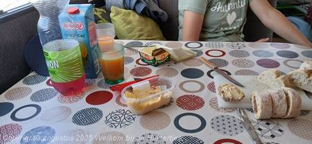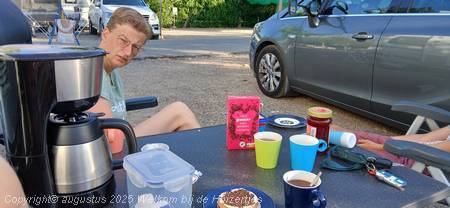 Vanmorgen samen met Jens en Max naar de autovia wezen kijken voordat het echt warm ging worden. Ontbijten, lezen, toilet legen, watertank vullen en zwemmen.