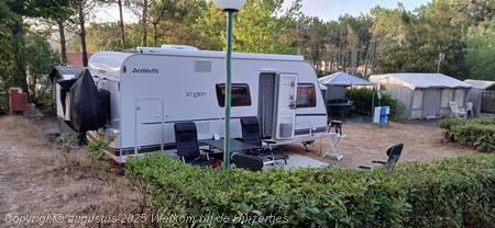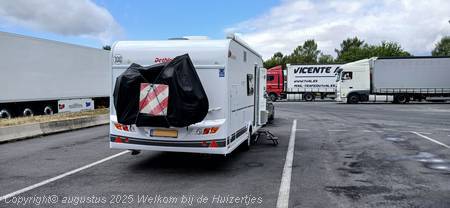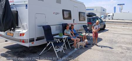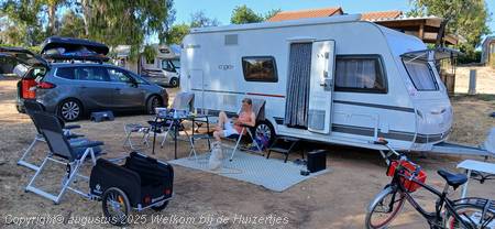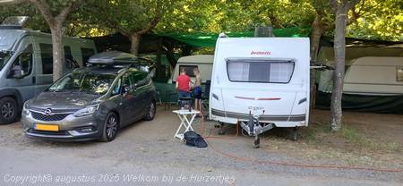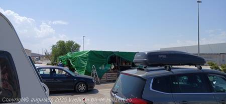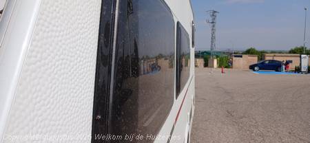 We hebben in totaal 6257 kilometer gereden, gelukkig zonder maar een schrammetje aan auto of caravan, toch netjes want we hebben een stevige reis gehad, met de eerst dagen flinke buien met slecht zicht, deze hele reis veel wind; met slecht wegdek in Spanje, hitte, veel stof, de combi ziet eruit! De auto heeft ’t gelukkig voortreffelijk gedaan.