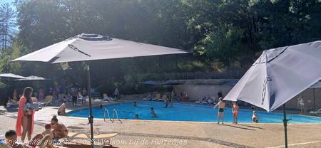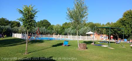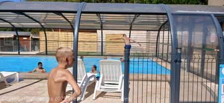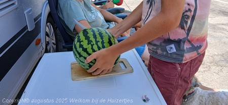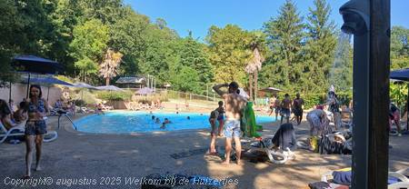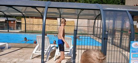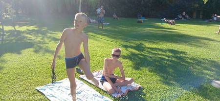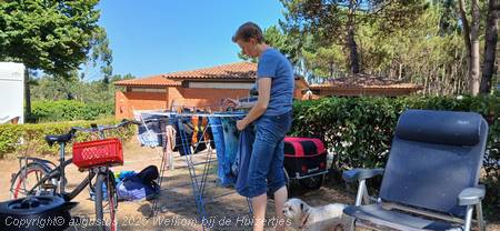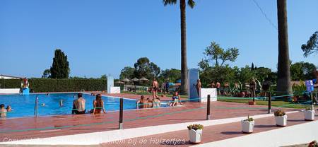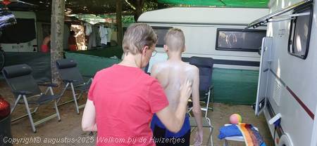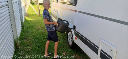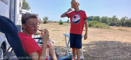 Een hete dag maar in de schaduw en in het zwembad wel uit te houden. En Max gaat dan de caravan in.