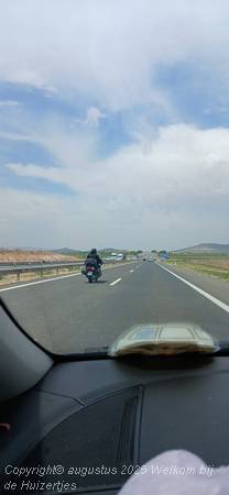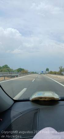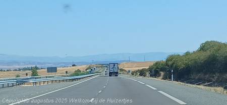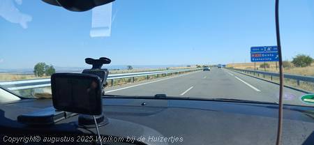 Vandaag hebben we het echte rauwe autovia boenderwerk gehad, de vullingen zijn er aardig bij ons uit gerammeld uit onze gebitten, want wat een slechte wegen hebben we gehad, het materiaal krijgt het aardig voor z’n kiezen. Maar de auto en caravan hebben zich voorbeeldig gedragen en hebben goed hun best gedaan. De auto doet het tot nu toe gelukkig perfect en is beresterk.