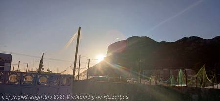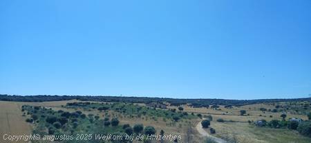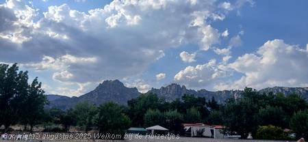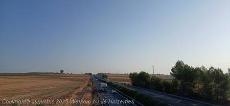 Maar wat een prachtig landschap hebben we gehad, Rianne vind het minder mooi, maar ik en ook de jongens vinden de prairie van Spanje echt mooi, dat wijdse dorre ruwe landschap heeft wel wat. Het was wel warm vanmiddag, maar is hier ook normaal, het was 36 graden met strakblauwe lucht, maar nu is het heerlijk en aardig luchtig en we zitten heerlijk buiten. Ik vermoed dat we hier ook aardig hoog zitten.