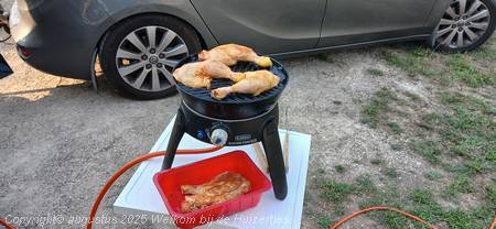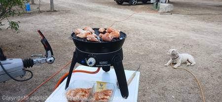 Lekker de cadac aangehad en kippetjes gebakken en hebben we lekker zitten eten.