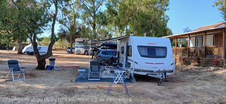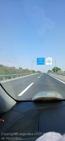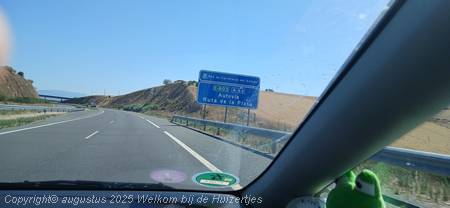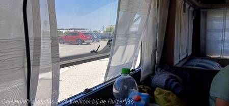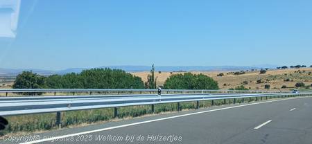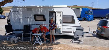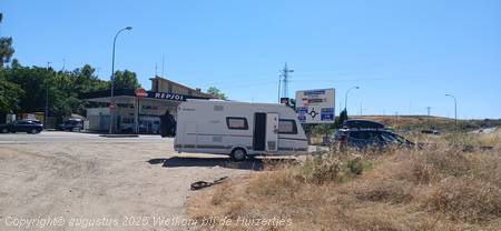 Helemaal super gemaakt, want de banden krijgen ’t zwaar te verduren over de Spaanse Autovia, wat een slechte wegen hebben ze hier en door de extreme hitte, vanmiddag was het 40 graden. De banden en het materieel krijgen het zwaar te verduren. Half 11 (PT) waren Jens en ik weer terug op de camping en in die tussentijd heeft Rianne de boel in de caravan reisvaardig gemaakt. De buitenboel heb ik klaar gemaakt, en de camping wezen betalen en we reden rond half 12 (PT) van de camping af.