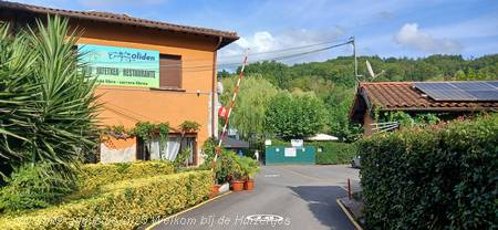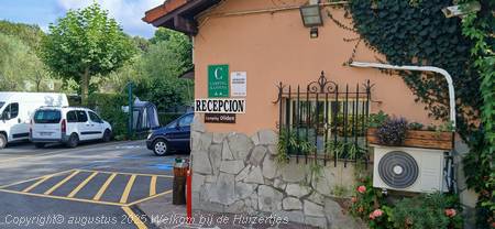 We hadden gemikt op een camping in Zarautz aan de Golf van Biskaje, maar deze was vol, een volgende camping in dezelfde plaats helaas ook, toen zijn we naar deze camping gereden verder van de kust af, er was een plekje vrij, maar is een matig plekje, maar we waren allang blij dat we wat hadden, maar met aanmelden en betalen bleken we de volle pond te moeten betalen, vind ik een te fors bedrag voor deze plaats met een stroompaal midden op onze plek, maar ja het is niet anders.