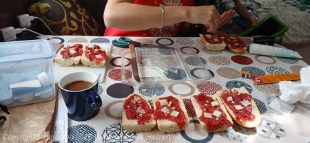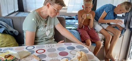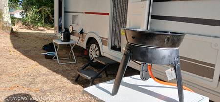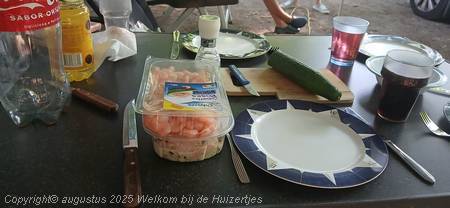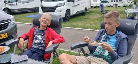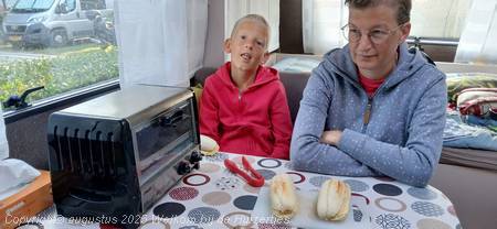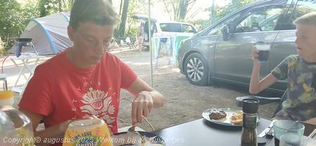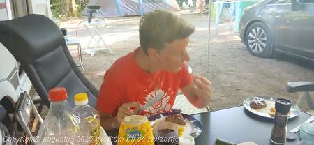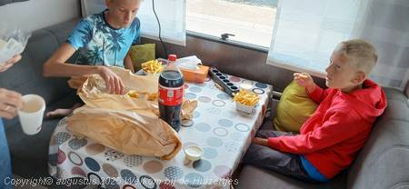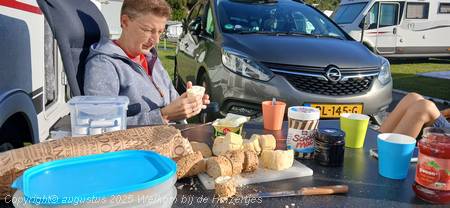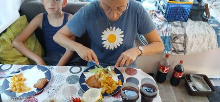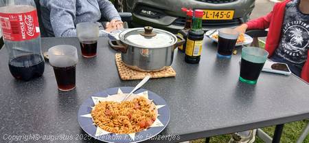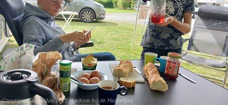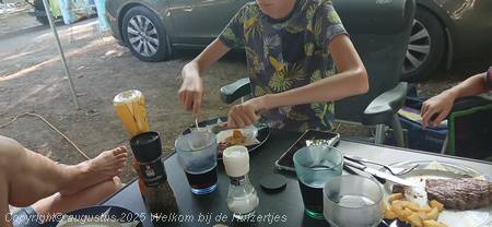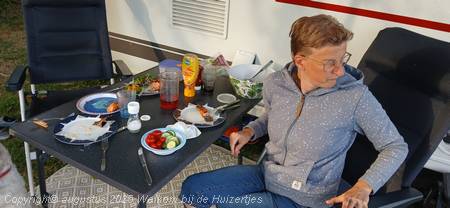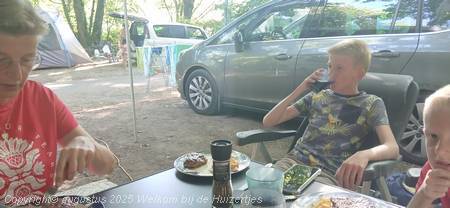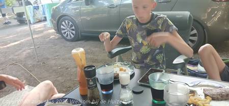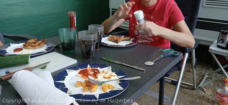 Op de camping eten klaargemaakt en lekker zitten eten.