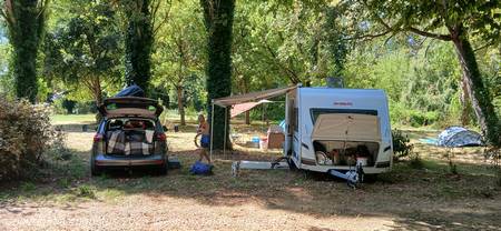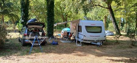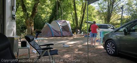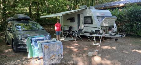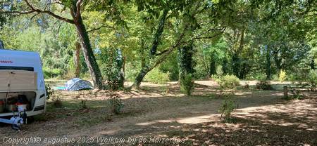 In Mirande op camping I’Îl du Pont gelukkig weer een pracht plekje op een eiland en midden in de bossen, lekker rustig hier.