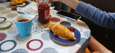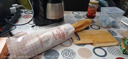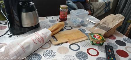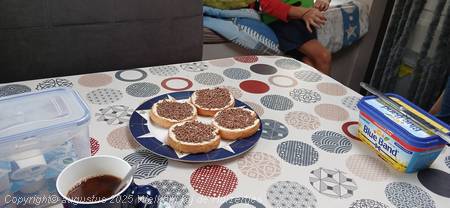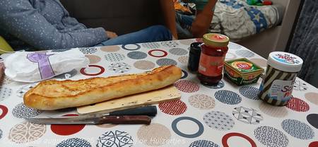 Vanmorgen eerst Max weer uitgelaten, daarna naar de plaatselijke bakker in Mirande heerlijke broodjes wezen halen en lekker in de caravan zitten ontbijten want ’t was vanmorgen best fris om buiten te zitten.