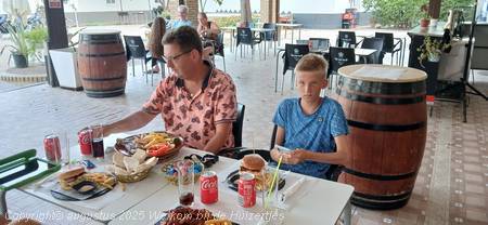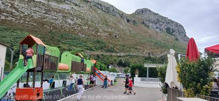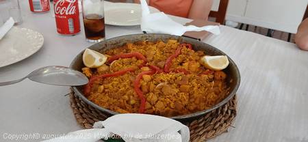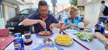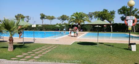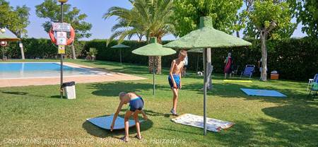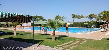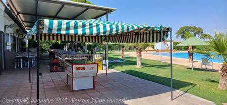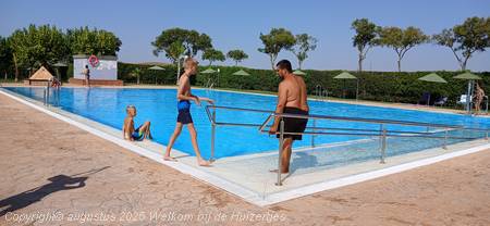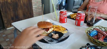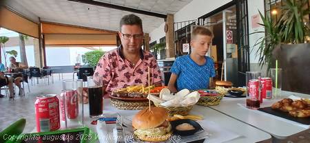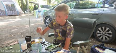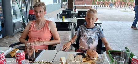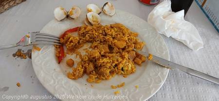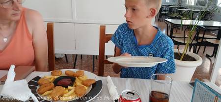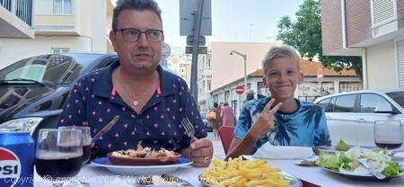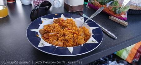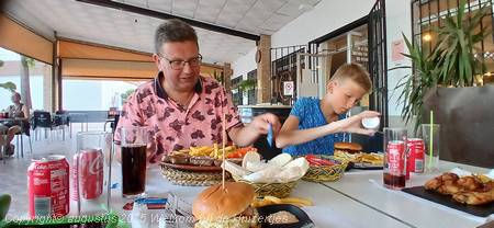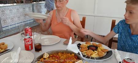 Als lunch zijn we in het campingrestaurant paella en kipnuggets met patat wezen eten, en na het uiteten weer lekker in het zwembad gedoken, airco in de caravan draait overuren, zodat het voor Max ook een beetje uit te houden is, want ook vandaag was het weer erg warm, de thermometer gaf vanmiddag ruim 40 graden aan.