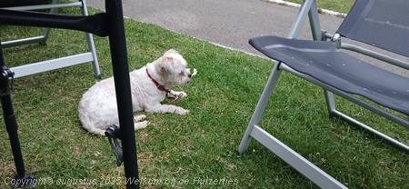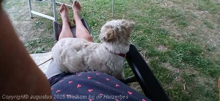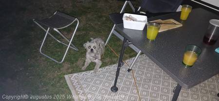 Er is net weer wat meer wind gekomen, dat is echt lekker nu. We zijn klaar met eten (..) en nu lekker genieten van het verkoelend windje. Oh ja, Max zo toch ook nog maar uitlaten..