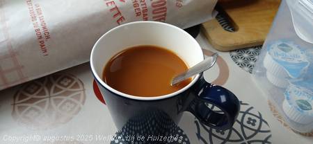 Vandaag een heerlijk vakantiedagje van gemaakt, lekker uitgeslapen, ontbeten, gezeten, wat zitten snoepen, drinken, lezen, kijken naar vertrekkende en aankomende combi’s, lekker zitten eten en nu aan de thee.