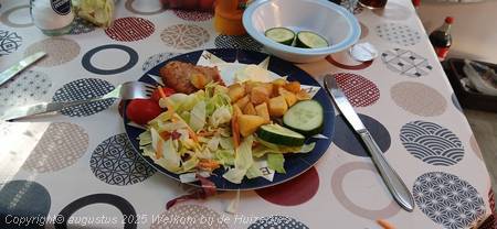 We waren laat met eten, maar het compenseert ’t met een uur tijdsverschil, het is bij ons een uur vroeger als in Nederland.