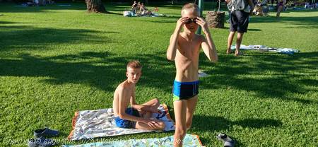 De jongens hebben nog lekker ff gezwommen na een bui toen we net aangekomen waren.