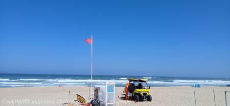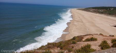 We hebben vandaag de toerist uitgehangen, we zijn eerst naar Foz do Arelho gereden vlakbij de camping, daar hebben we een stukje gewandeld en aan zee op het strand wezen kijken, de zee was behoorlijk ruig door de stormachtige wind dat ook vandaag stond. De rode vlag hing er ook.