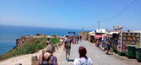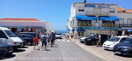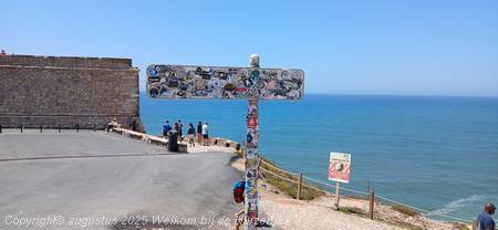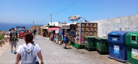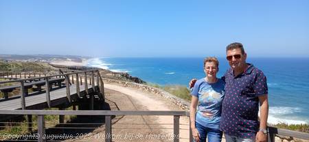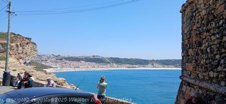 Daarna zijn we naar Nazaré gereden, het kostte wat moeite om de auto te parkeren, het was erg druk met toeristen, maar het is uiteindelijk gelukt en we hebben een flinke wandeling gemaakt naar de rots en strand dat bekend staat om de hoogste golven ter wereld waar surfers gebruik van maken, met name tijdens storm op de oceaan kunnen er gigantische golven voor komen, vooral ’s winters, ik als weerfanaat is het erg interessant om er eens geweest te zijn.