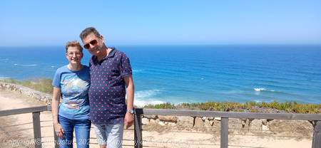 We zijn via de kustroute gereden, wat een geweldig mooie route is dat, een prachtige kustlijn met kliffen en rotsen. Daar hebben we ook gewandeld en foto’s van ons gemaakt.
