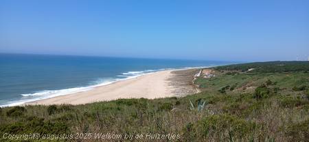 Vanmorgen hebben we op het gemakje zitten ontbijten, toilet weer geleegd en alles reisvaardig gemaakt. We zijn vandaag weer verder gaan rijden, we zijn via Lissabon gereden via de Ponte de 25 Abril, de bekende hangbrug over de Taag in Lissabon.