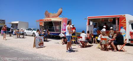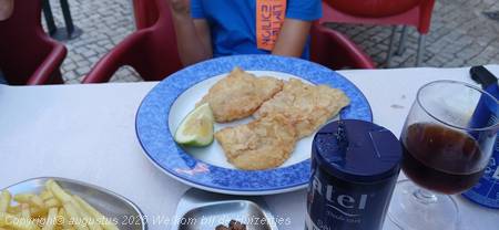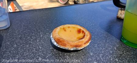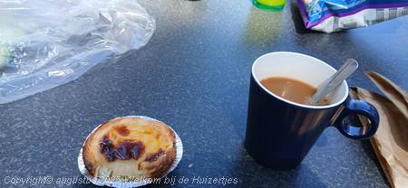 We hebben nog wat souvenirs gekocht en weer naar de auto gelopen en hebben een boodschapje gedaan, waar we daarna naar de camping zijn gereden en bij de caravan een bakje koffie hebben gedaan met de net gekochte pastel de nata bij de koffie, dat is een typisch Portugees bladerdeegbroodje met vanillepudding erin, is erg lekker vinden we.