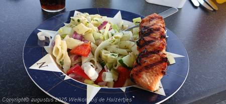 Vanavond op de barbecue lekkere zalm gebakken en lekker zitten eten.