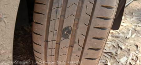 Gisterenmiddag kwam ik tot de ontdekking dat er een spijker in m’n band zat. We waren van plan om vandaag weer verder te gaan trekken, maar toch maar besloten om eerst een bandenboer op te zoeken om m’n band te laten repareren, vanmorgen optijd eruit (7u Portugese tijd, PT) gegaan en rond half tien (PT) was ik bij een Euromaster in Albufeira, waar de band helemaal van de velg afgehaald is en gerepareerd.