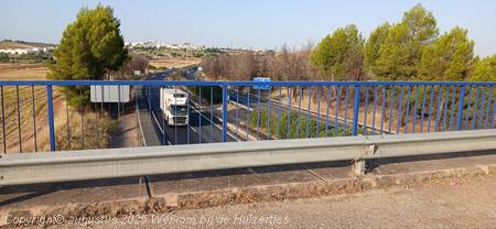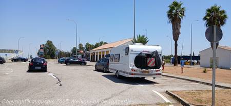 Onderweg weer een stevige wind. We zijn richting Faro over de A22 gereden, bij de grens naar Spanje (de tijd weer een uur vooruit, dus we missen een uur) over een mooie brug gereden, via de A49 zijn we via Sevilla gereden, rond half 6 kwamen we hier aan, we staan nu net voor Cordóba, in La Carlota langs de A4.