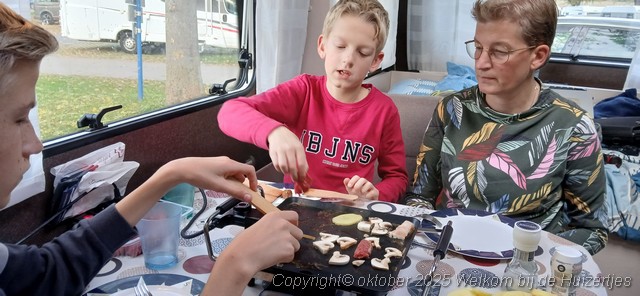 Wij vinden het heerlijk om met de herfst nog een paar dagen op stap te gaan en zolang de jongens het leuk vinden nemen we het ervan. We hebben alles aan boord, een gaskachel met ringverwarming, een extra elektrisch kacheltje en lekkere winterdekbedden, dus kou hoeven we niet te lijden, we hebben tv aan boord met satellietontvanger en schotel en is het ’s avonds lekker knusjes in de caravan. En de jongens kunnen fietsen, wat ze vanmiddag hebben gedaan en hebben Nintendo en tablets en telefoon, dus die vermaken zich wel.