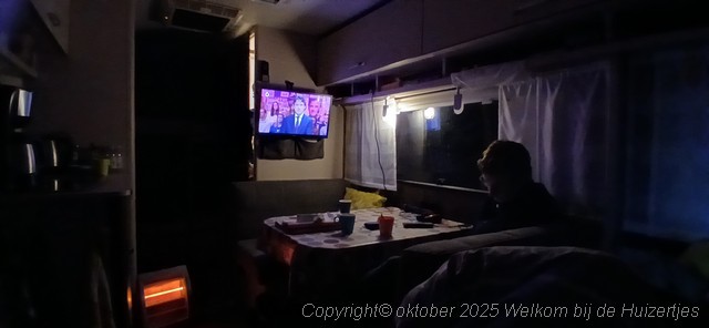 Nu tv kijken met het elektrische kacheltje aan en lekker genieten en inmiddels is het gaan regenen.
