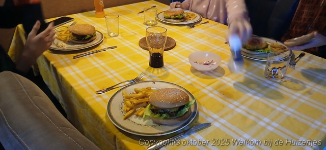 Vanavond zijn we lekker wezen uiteten, maar voor de zekerheid zijn we met de auto naar een restaurantje hier in de buurt gegaan, dat we niet nat geregend thuis komen.