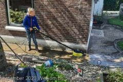 Ook de tuin is opgeknapt, het terras is opnieuw bestraat en de regenton aangesloten door een tuiniersbedrijf, en zelf hebben we het andere straatwerk goed schoon gespoten en geveegd. En hebben we later in het voorjaar een nieuw tuinpaviljoen aangeschaft en opgebouwd, zodat we weer een heerlijk terras hebben.